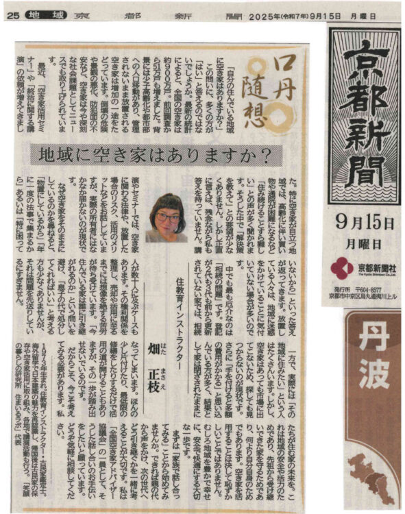 2025年8月21日の十日町新聞に、全国空き家アドバイザー協議会新潟県十日町支部主催で開催したセミナーについて掲載いただきました。 当セミナーは「増える空き家の地方創生」について全国空き家アドバイザー協議会 専門員、井上 […]